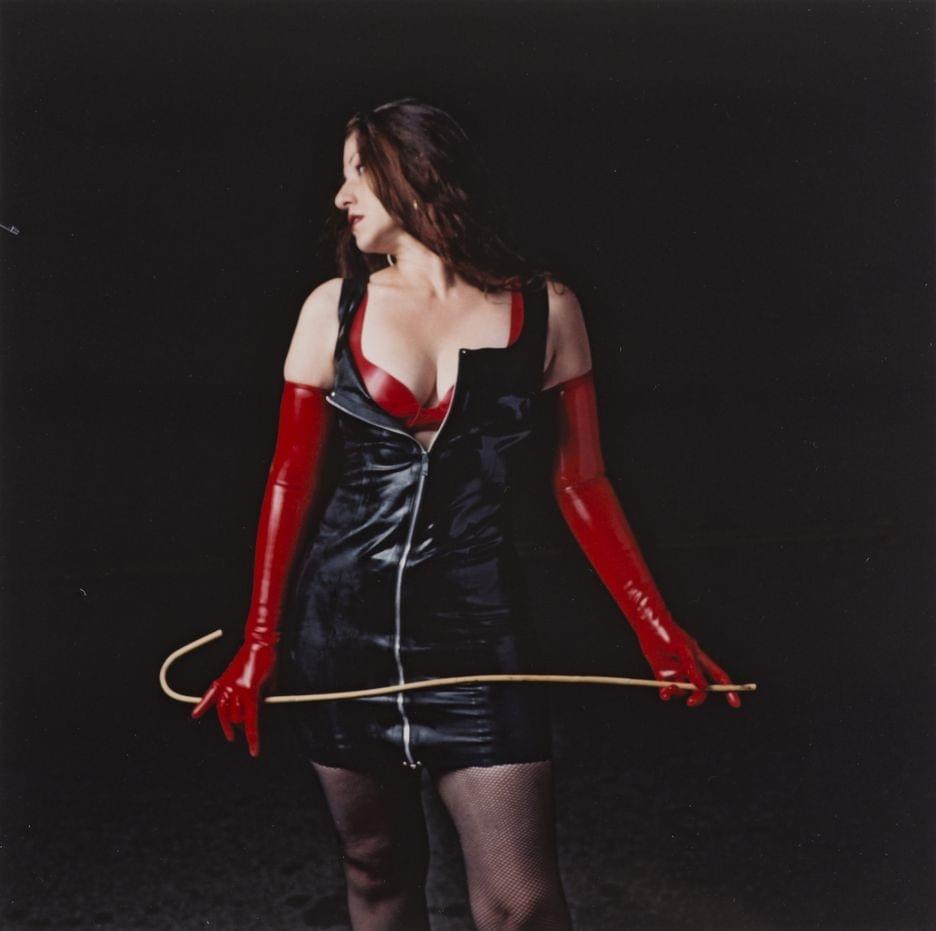 Jeune femme sur un sol en damier, tirage argentique en couleurs,...