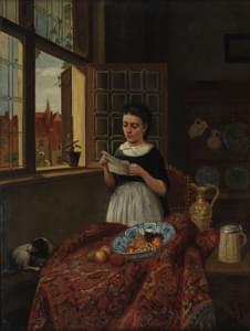 Lecture à la fenêtre, huile sur panneau, signée et datée 1856, 6...
