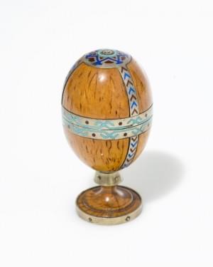 107. Oeuf de Pâques en bois naturel et monture d'argent à motif d'éma...