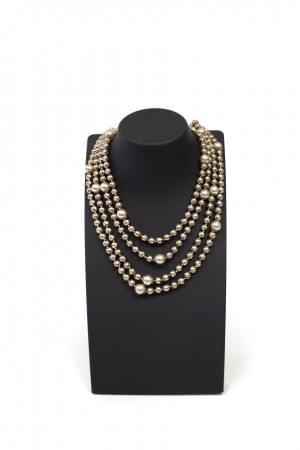 3183. De Mario, lot d'un collier et d'un bracelet multirangs de perles d'imitation centrés de motifs de coquillage et feuillages