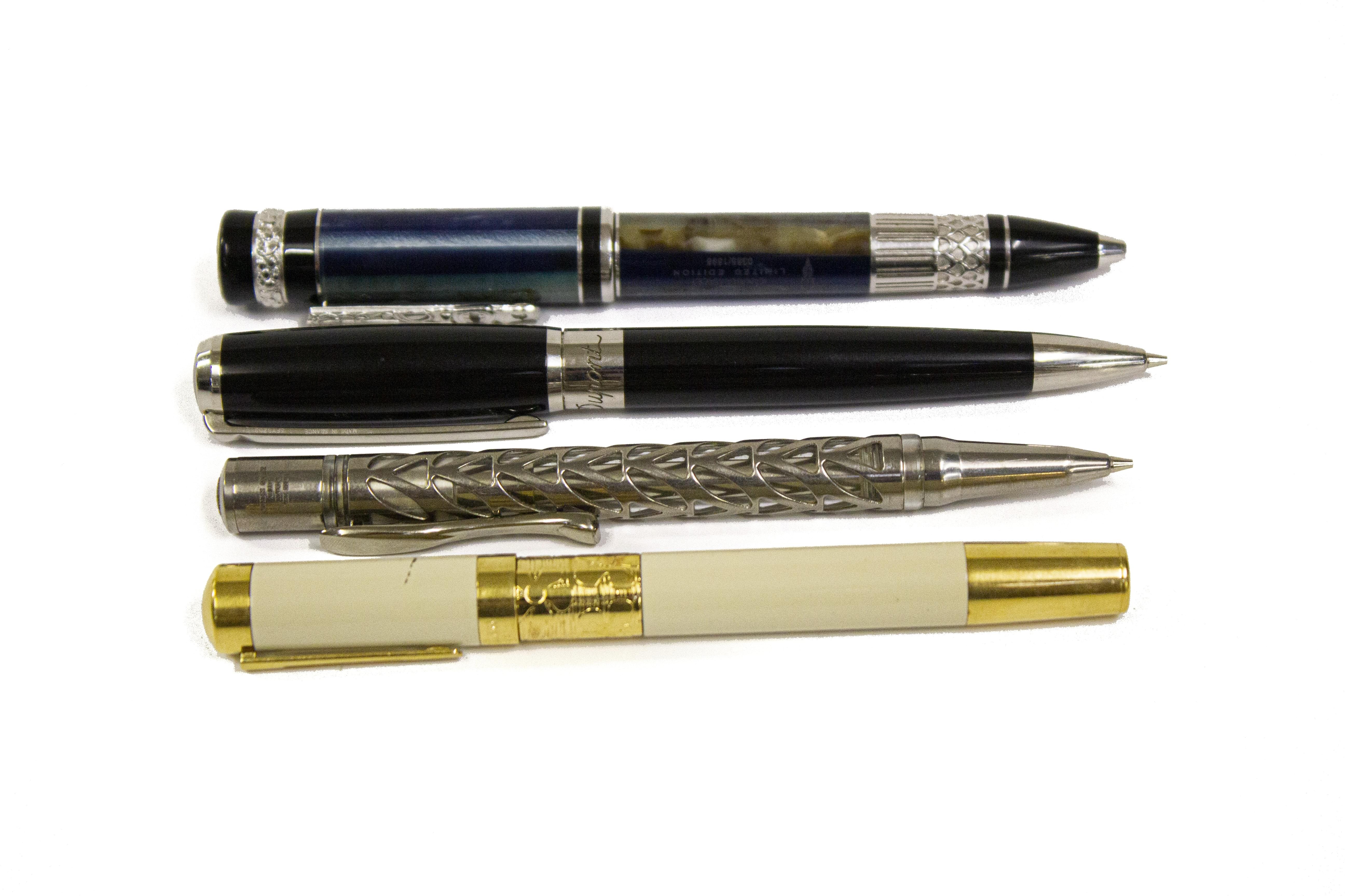 3344. Delta, Visconti, Waterman et Dupont, lot de deux porte-mines, un stylo bille et un porte-plume