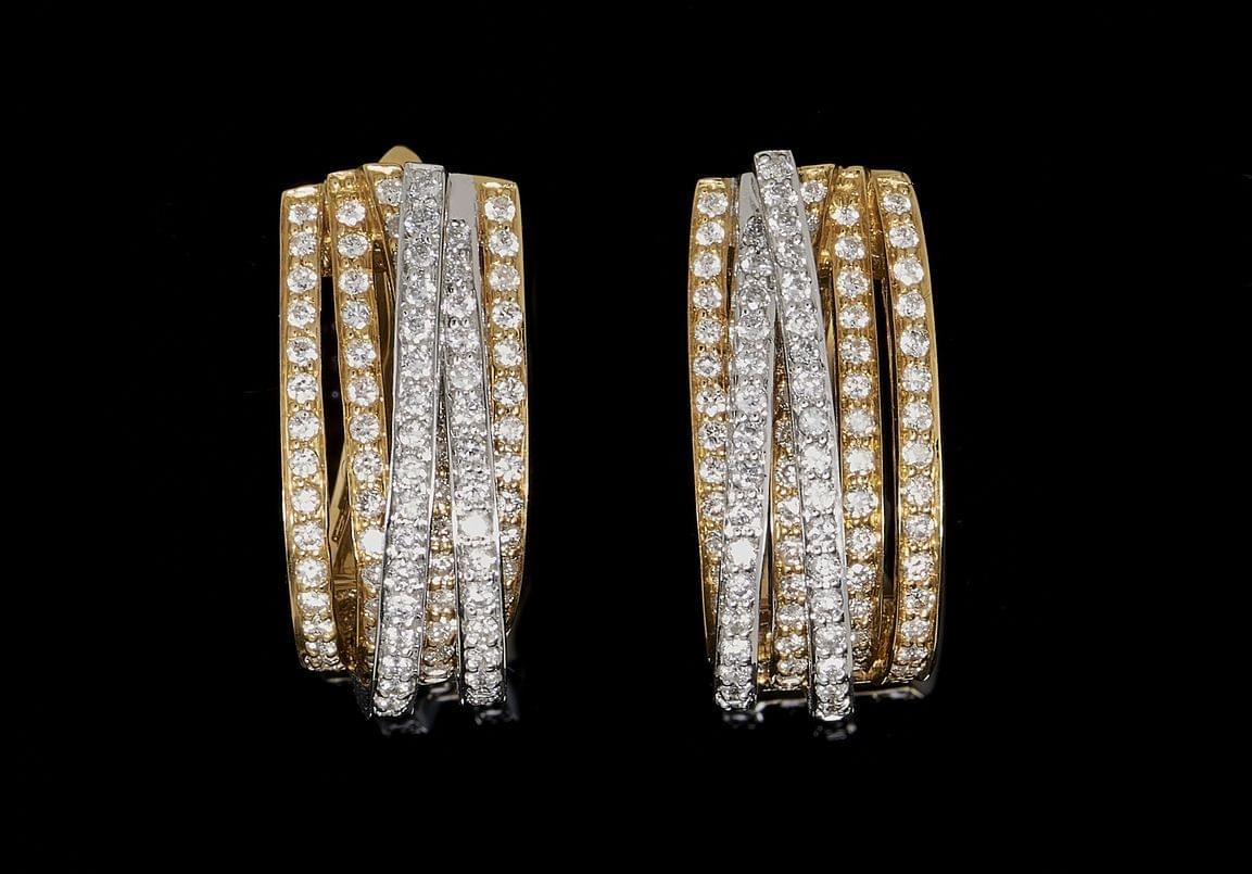 188. Demi-créoles deux ors pavées de diamants (env. 1,8 ct)