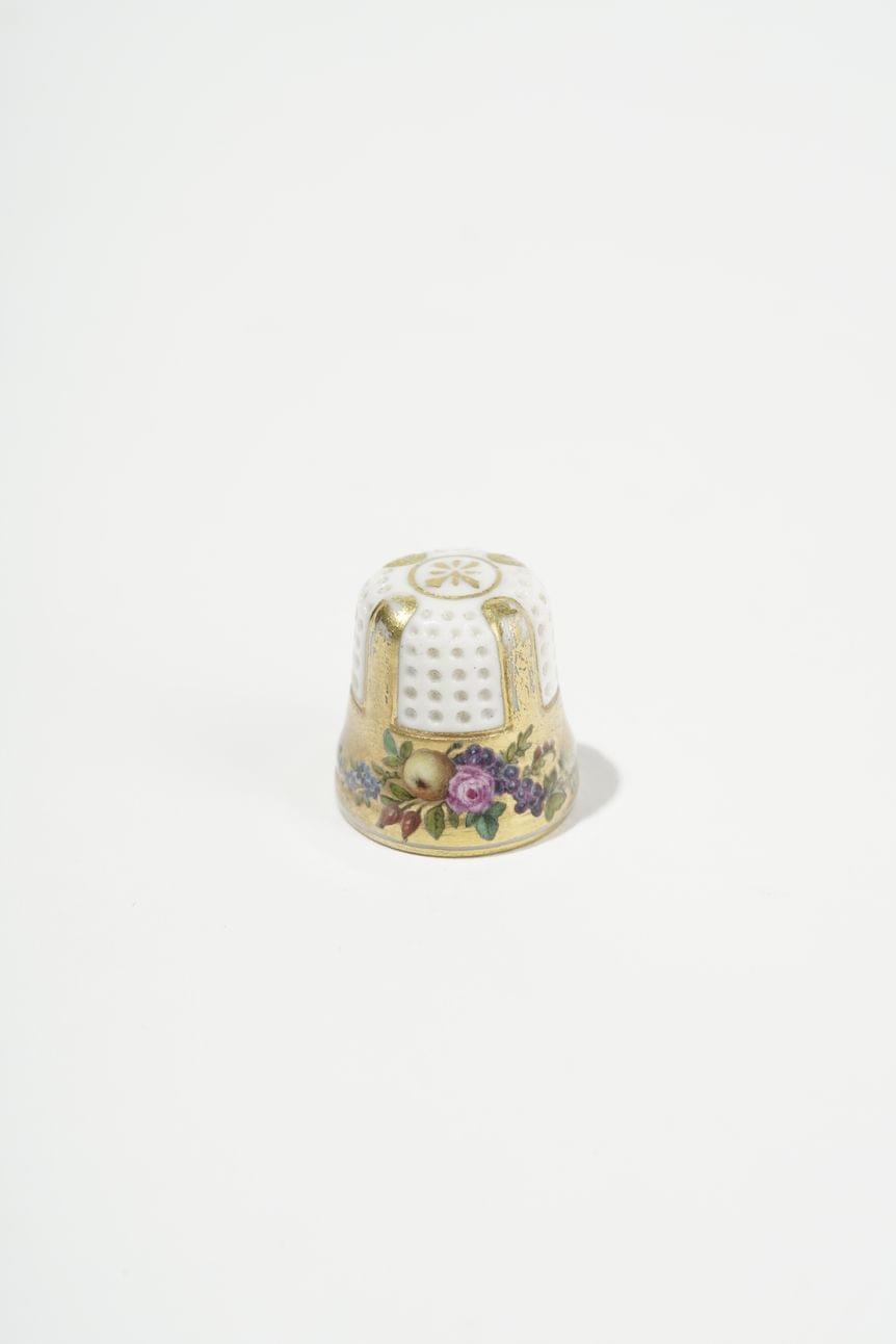 366. Dés à coudre à décor de fleurs sur fond or