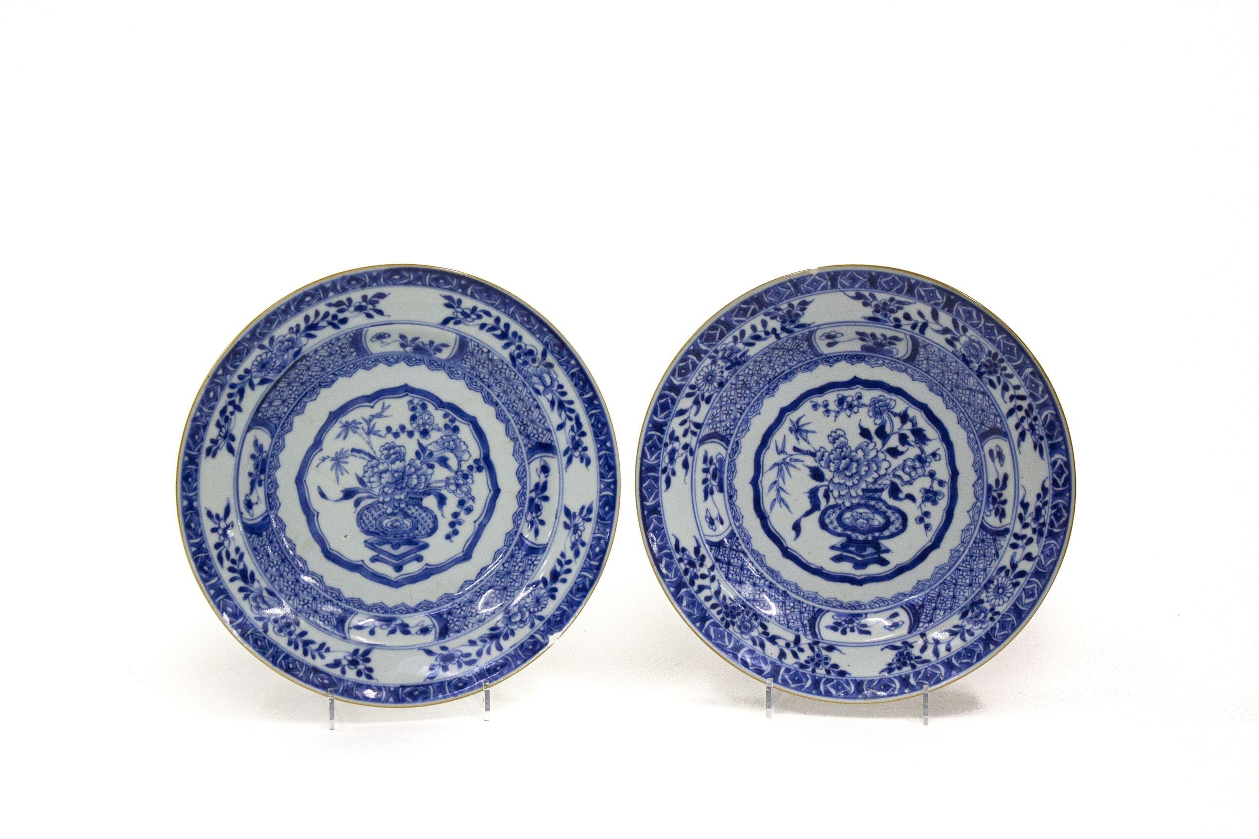 Porcelaine émaillée bleu blanc à décor de vase fleuri, D 23 cm