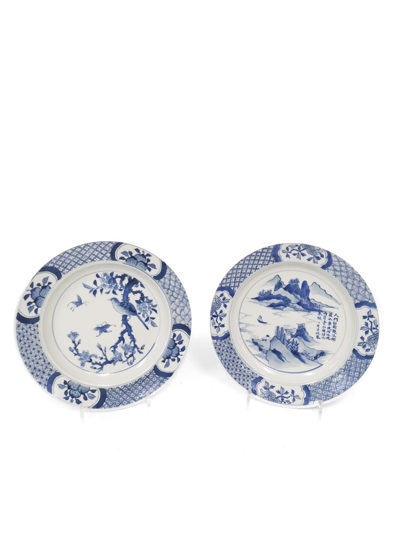 Porcelaine bleu blanc à motifs floraux et paysages, D 22 cm