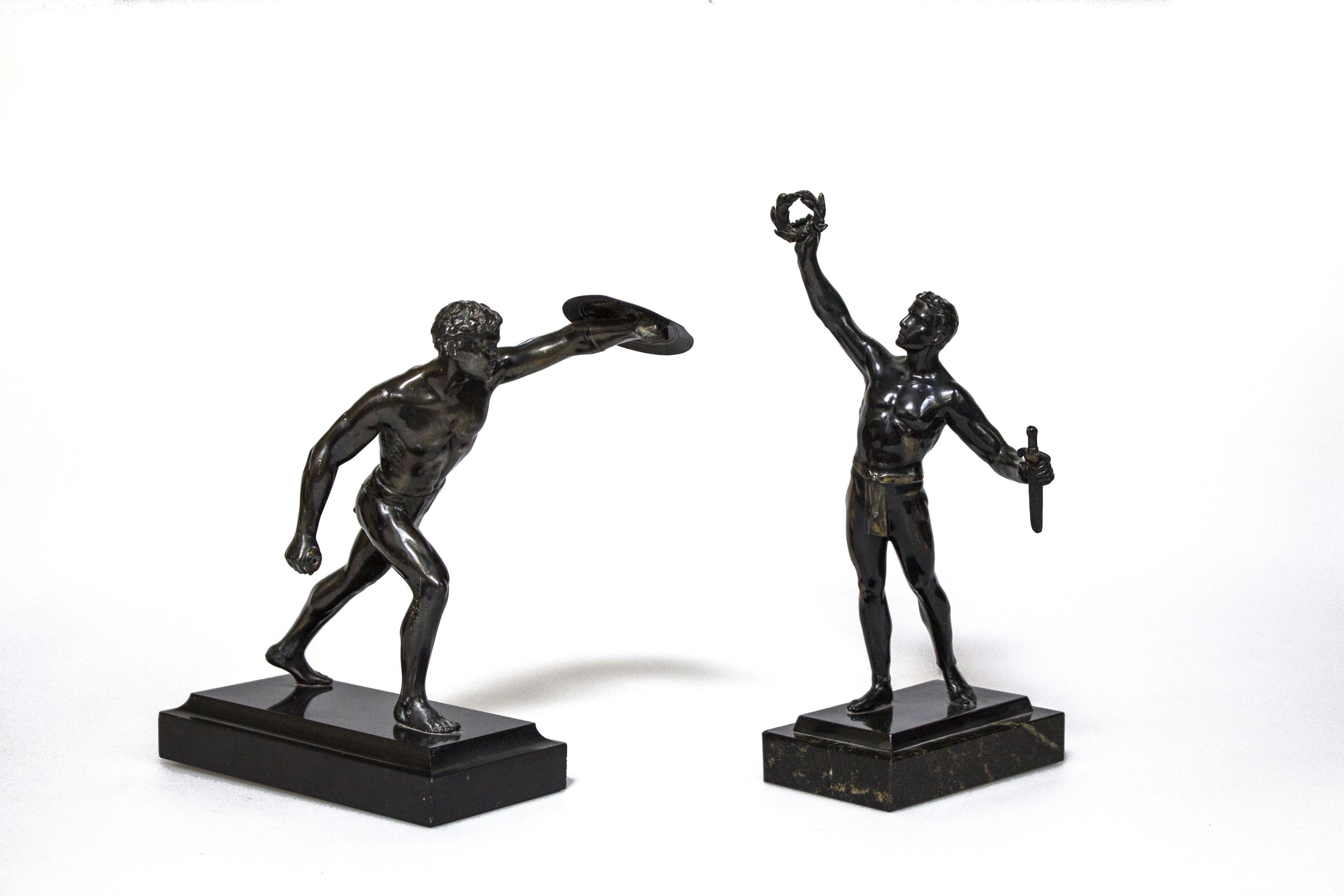 Statuettes en bronze à patine noire, souvenir du grand tour, H 28 cm