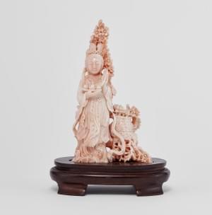 Corail peau d'ange sculpté, Chine, H 18 cm, 460 g