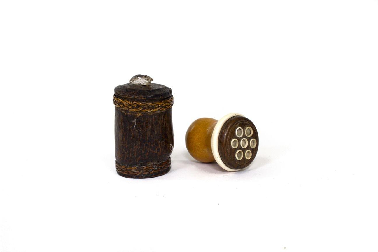 L'une en bambou, l'autre en calebasse, H 12 et 9 cm