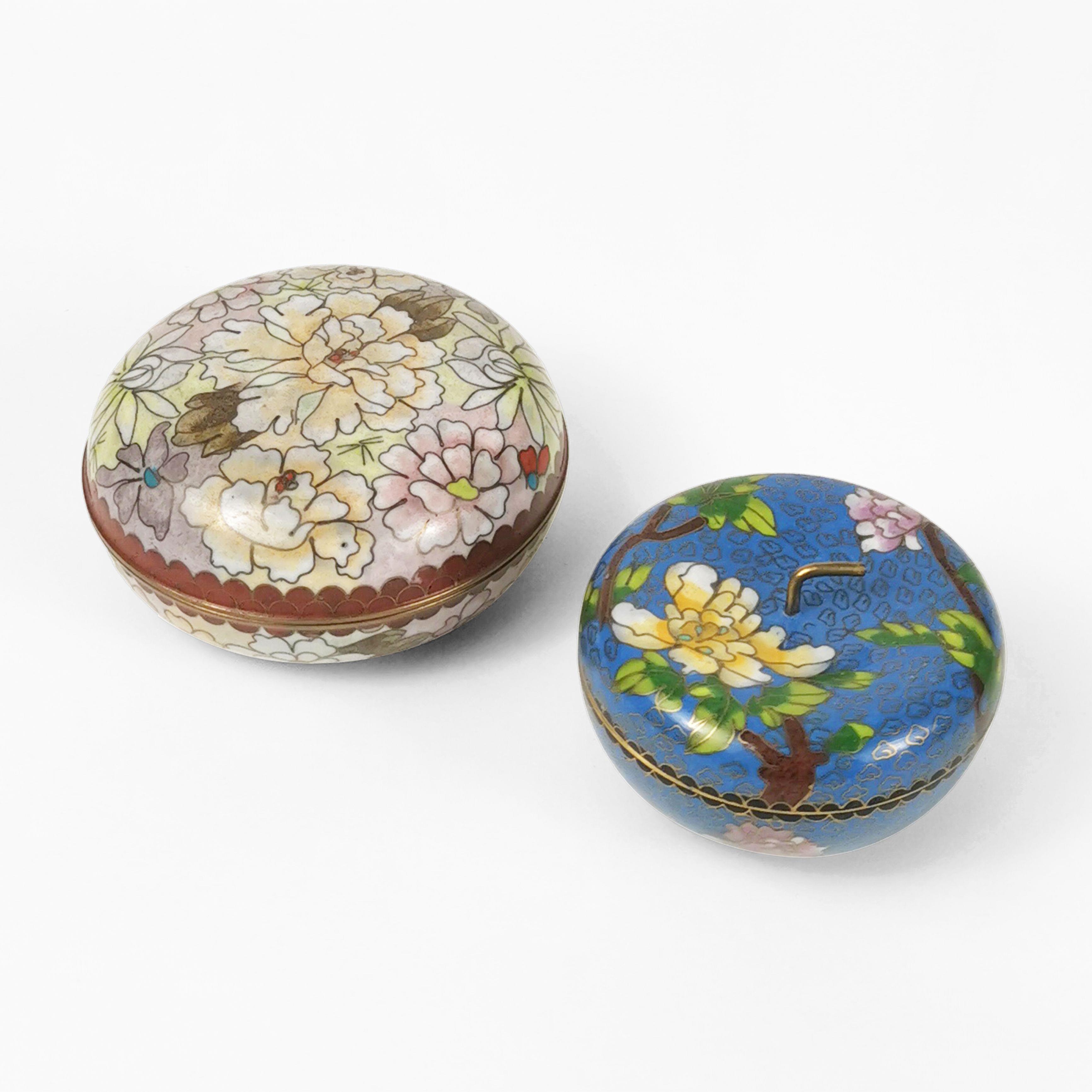 4705. Deux boîtes rondes à décor de pivoines en cloisonné, Chine
