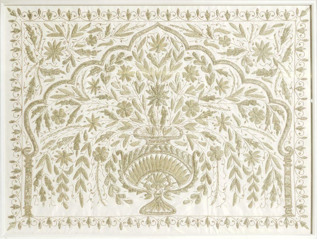 87. Bague sertie d'une topaze impériale (env. 47 ct) retenue par deu...