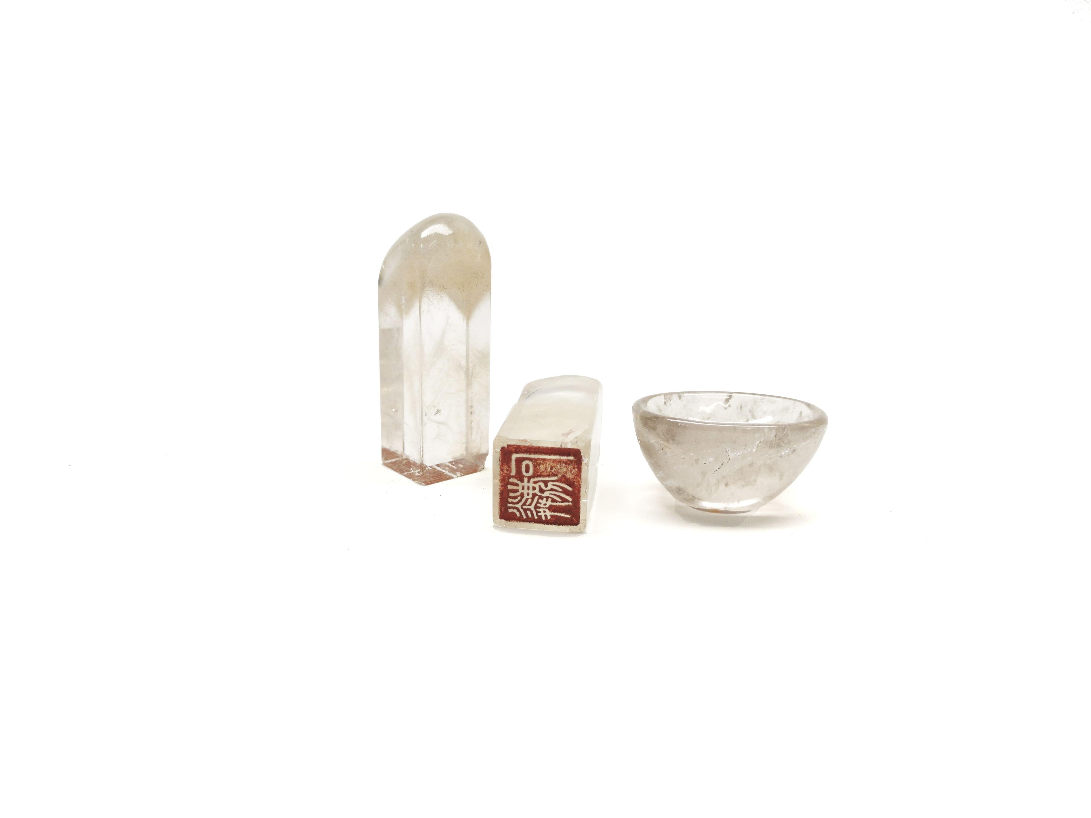 43. Boutons de manchette en cristal de roche sertis de rubis taille...