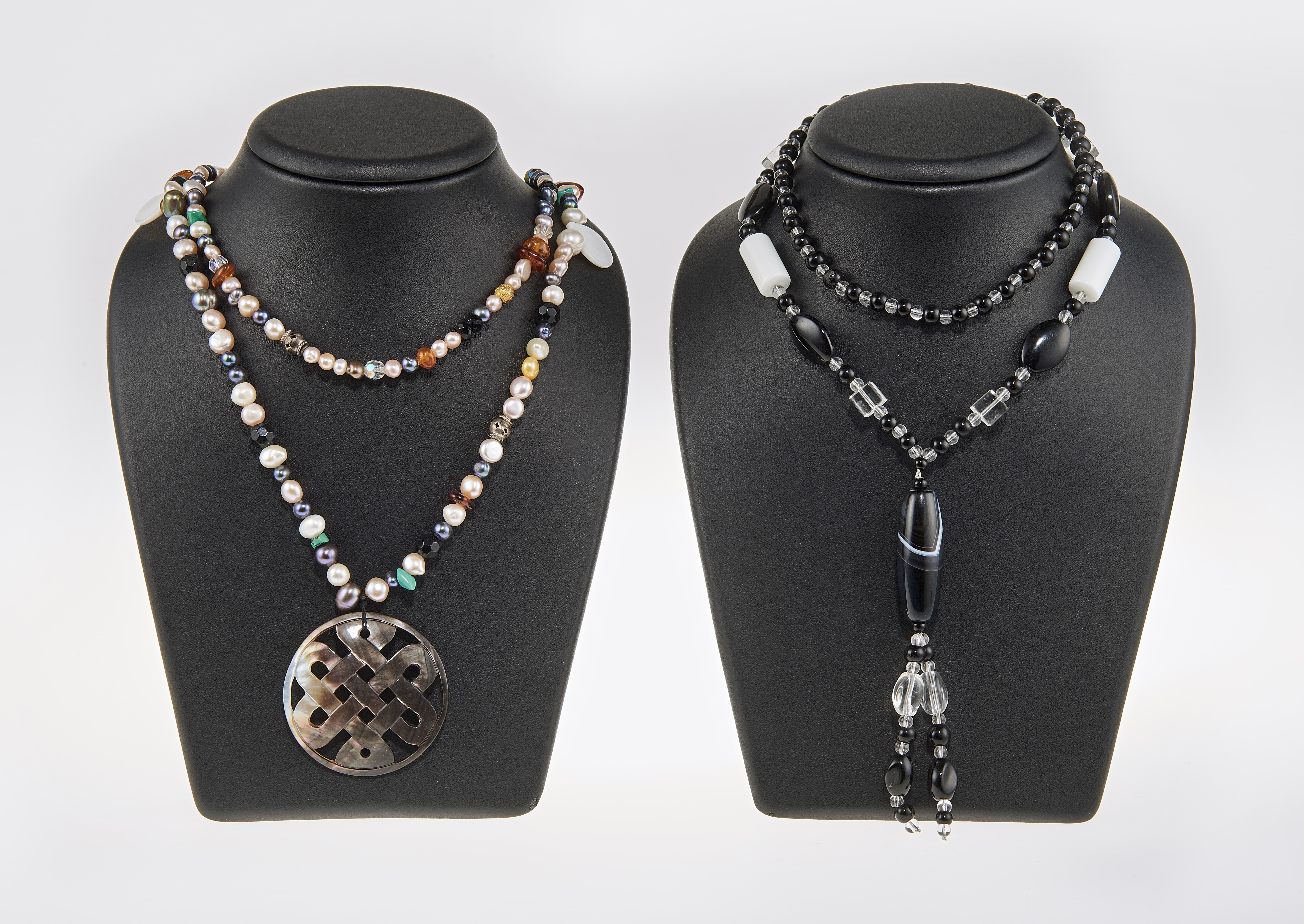 Nacre, pierres diverses et verre, L 100 et 75 cm