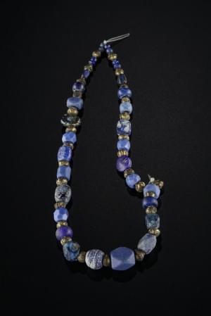 827. Deux colliers, l'un de perles bleues facettées et de perles en verre, l'autre de perles en verre et de grenat, proche ou moyen-orient, probablement, IIIe-IIe millénaire av. JC