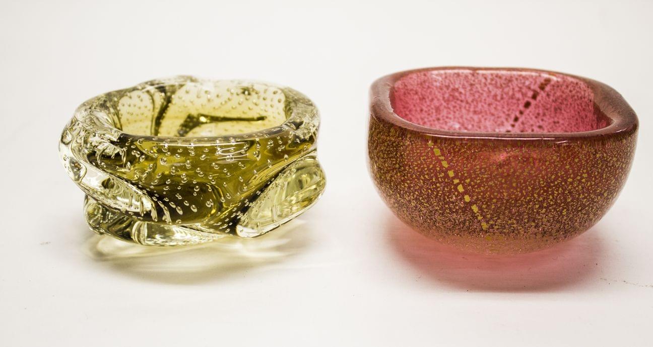 Verre bullé et pailleté or, l'une rose signée Venini, Murano, L 10 cm