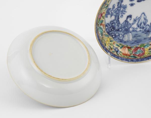 Porcelaine émaillée bleu blanc à décor en polychrome et or, D 11,5 cm