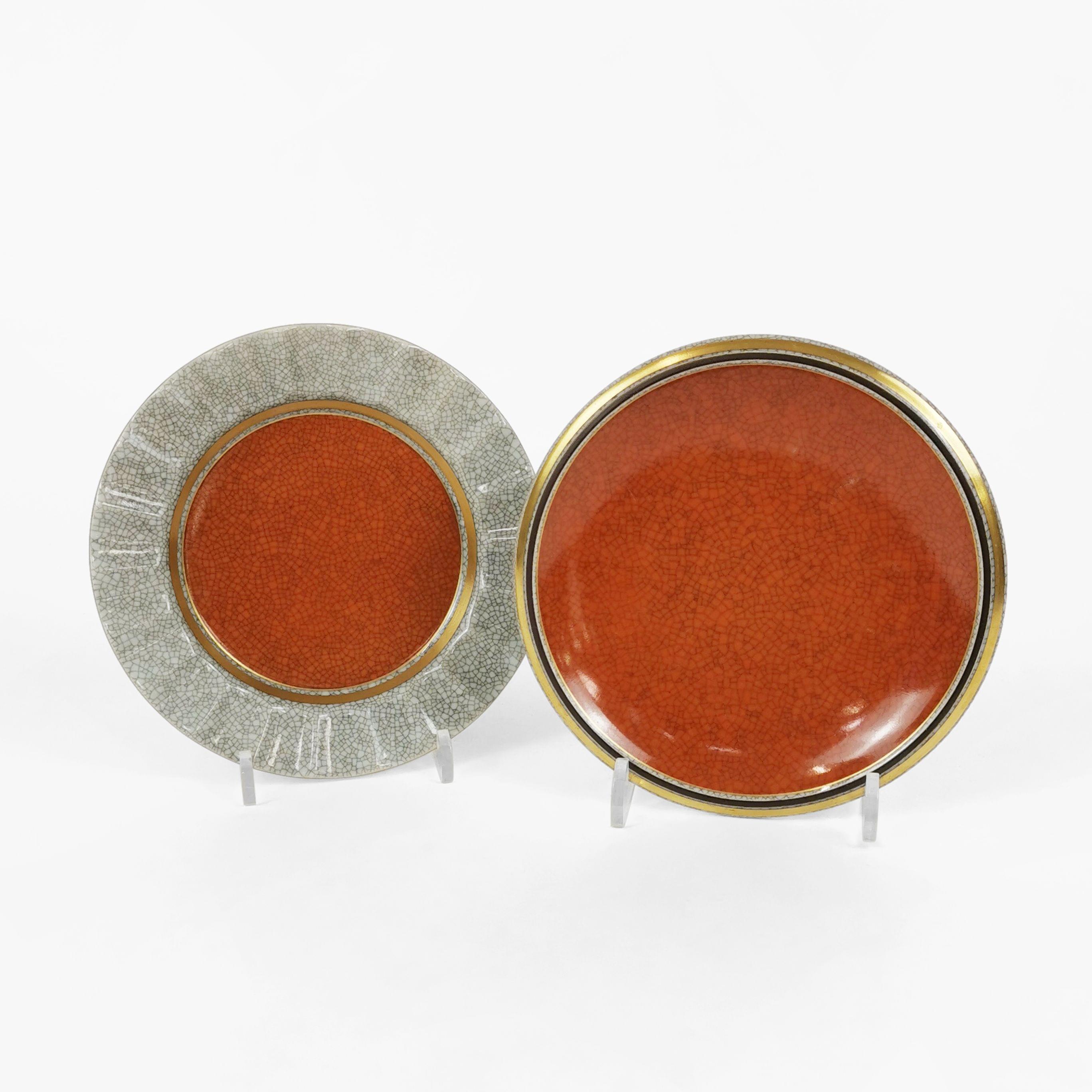 Porcelaine émaillée craquelée gris et orange, D 17 cm