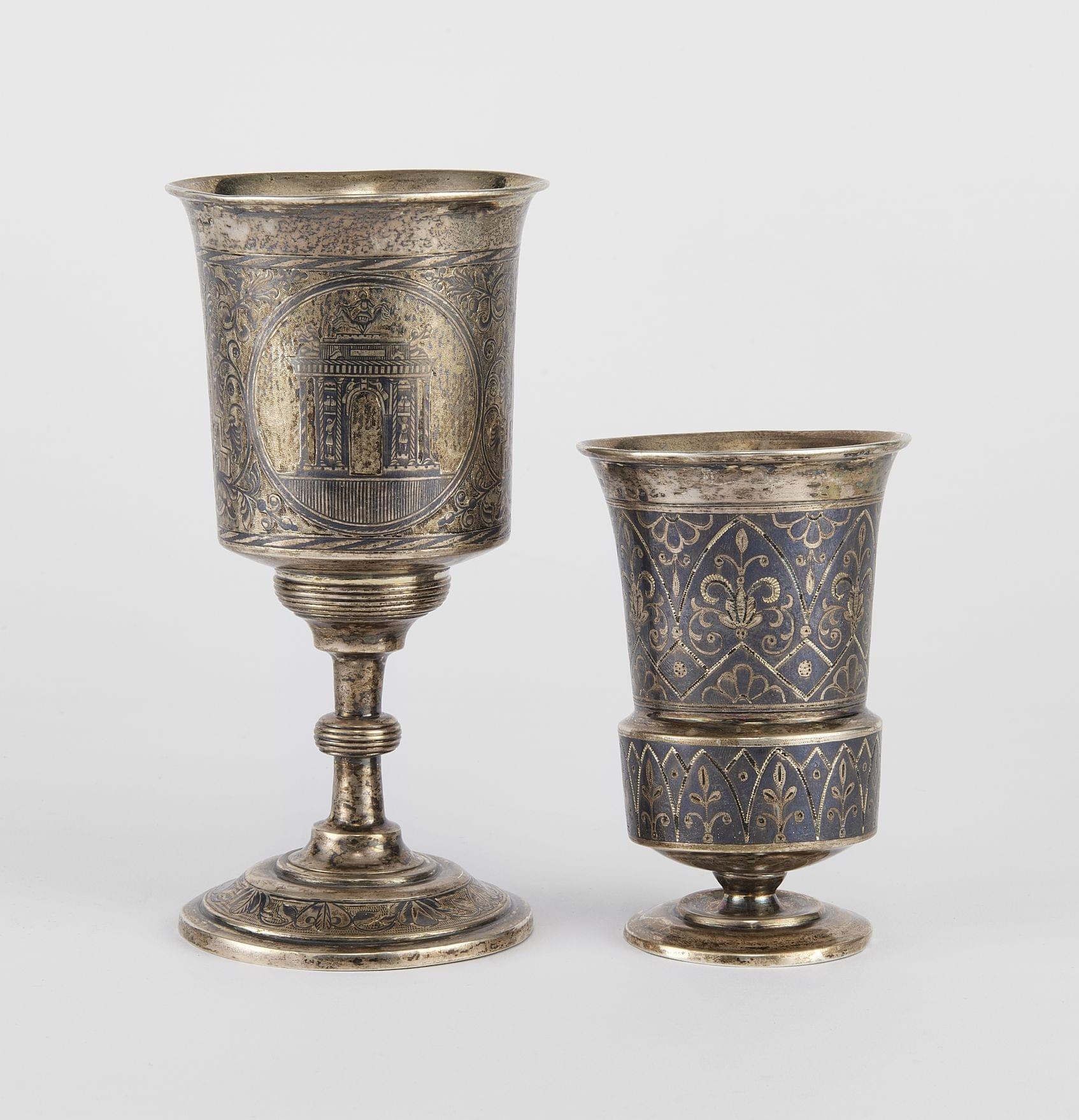 Russie, 1838-1839, argent niellé, H 10,5 et 15,5 cm, 330 g