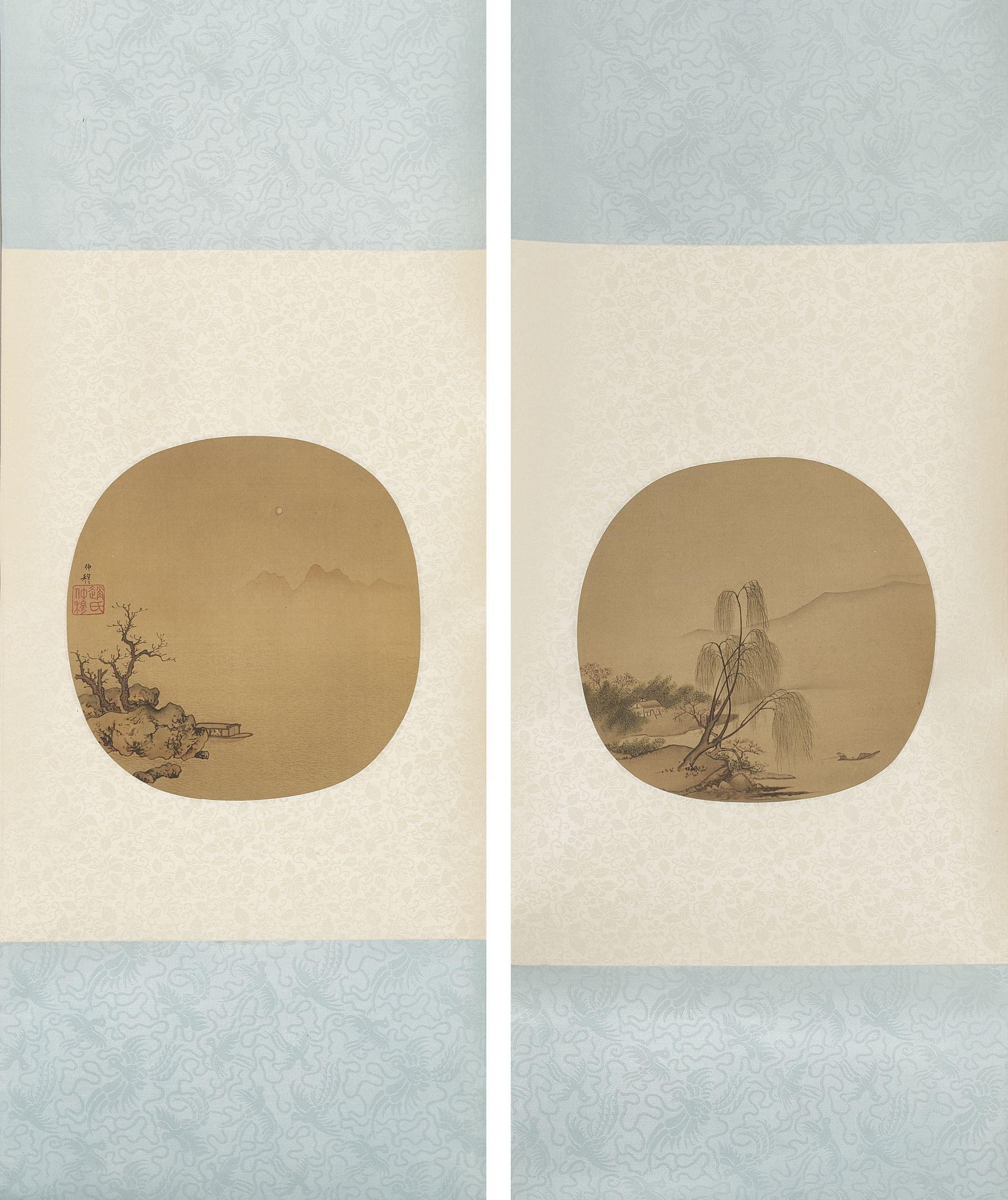 51. Boutons de manchette retenant des motifs en agate mousse sertis...