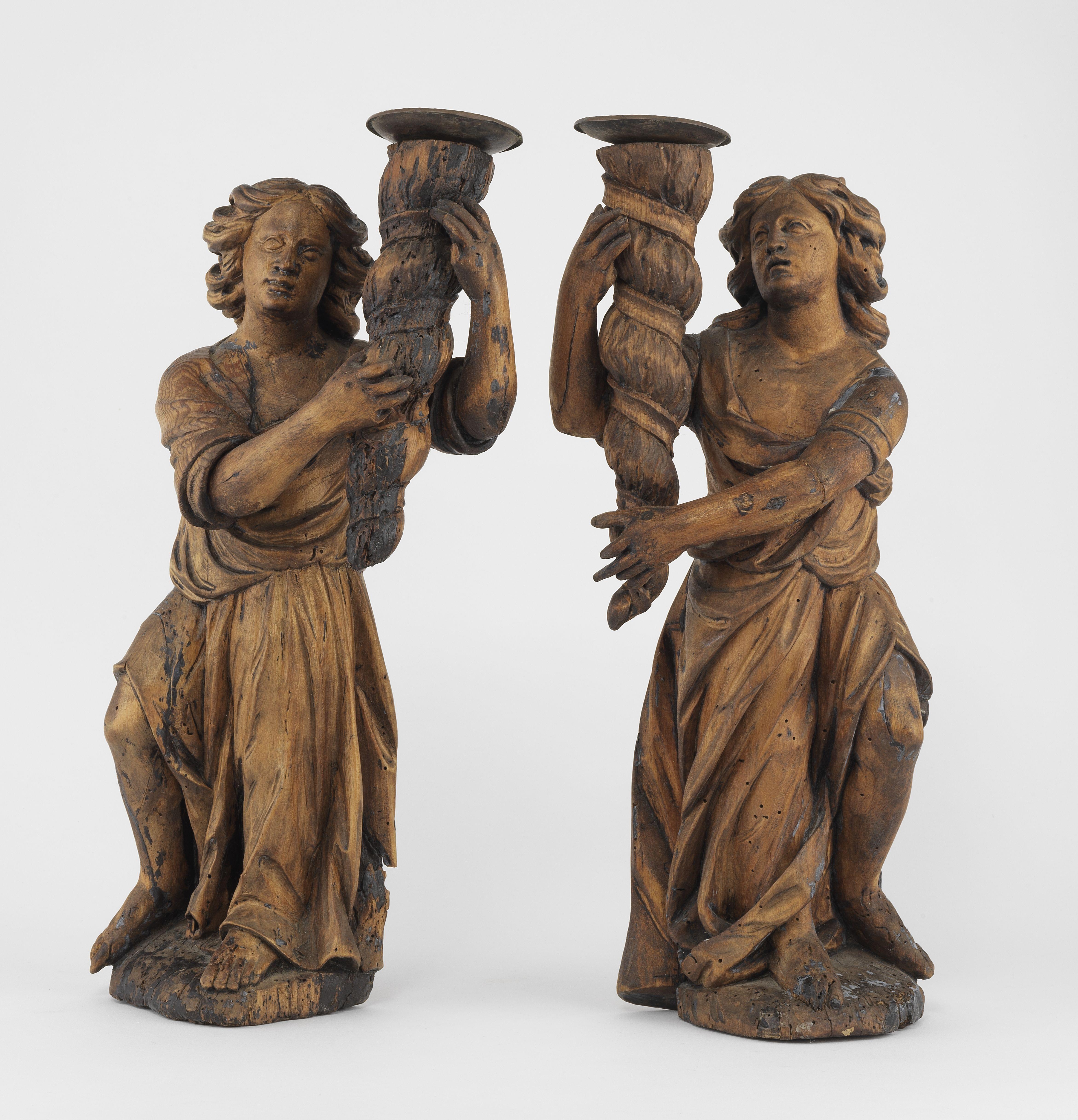 4137. Deux figures drapées porte-cierge, XVIIIe s