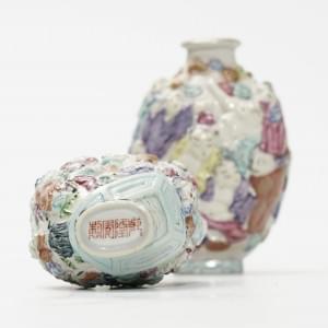 Porcelaine à décor d'enfants en léger relief, marque apocryphe de Qianlong, H 7 cm