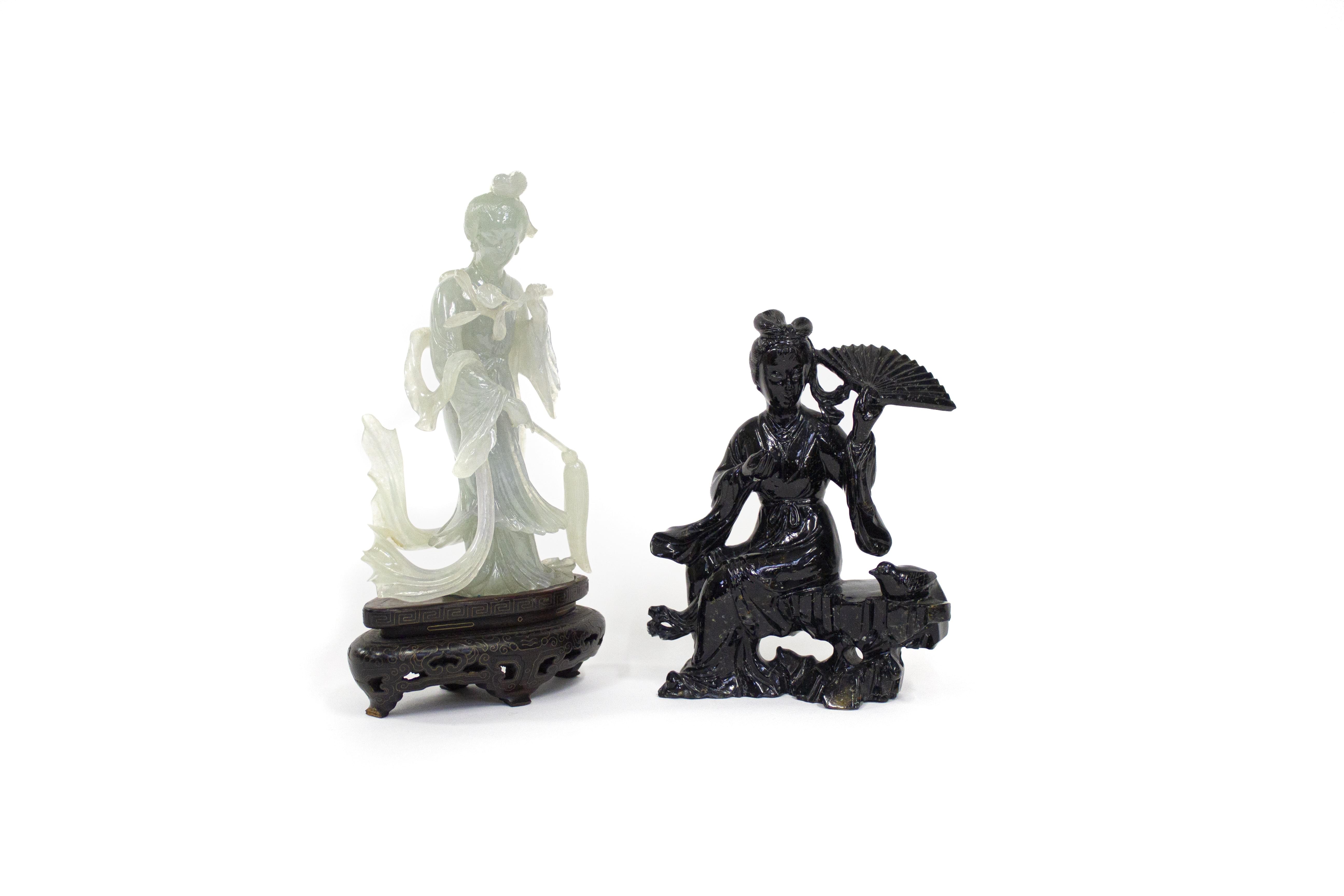 Pierre dure sculptée et ajourée, H 14 et 15 cm