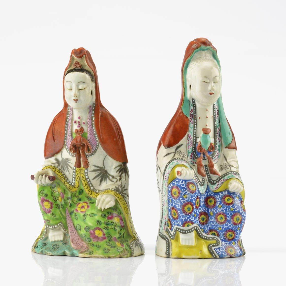 Porcelaine émaillée polychrome, Chine, XVIIIe s, H 20 et 21 cm