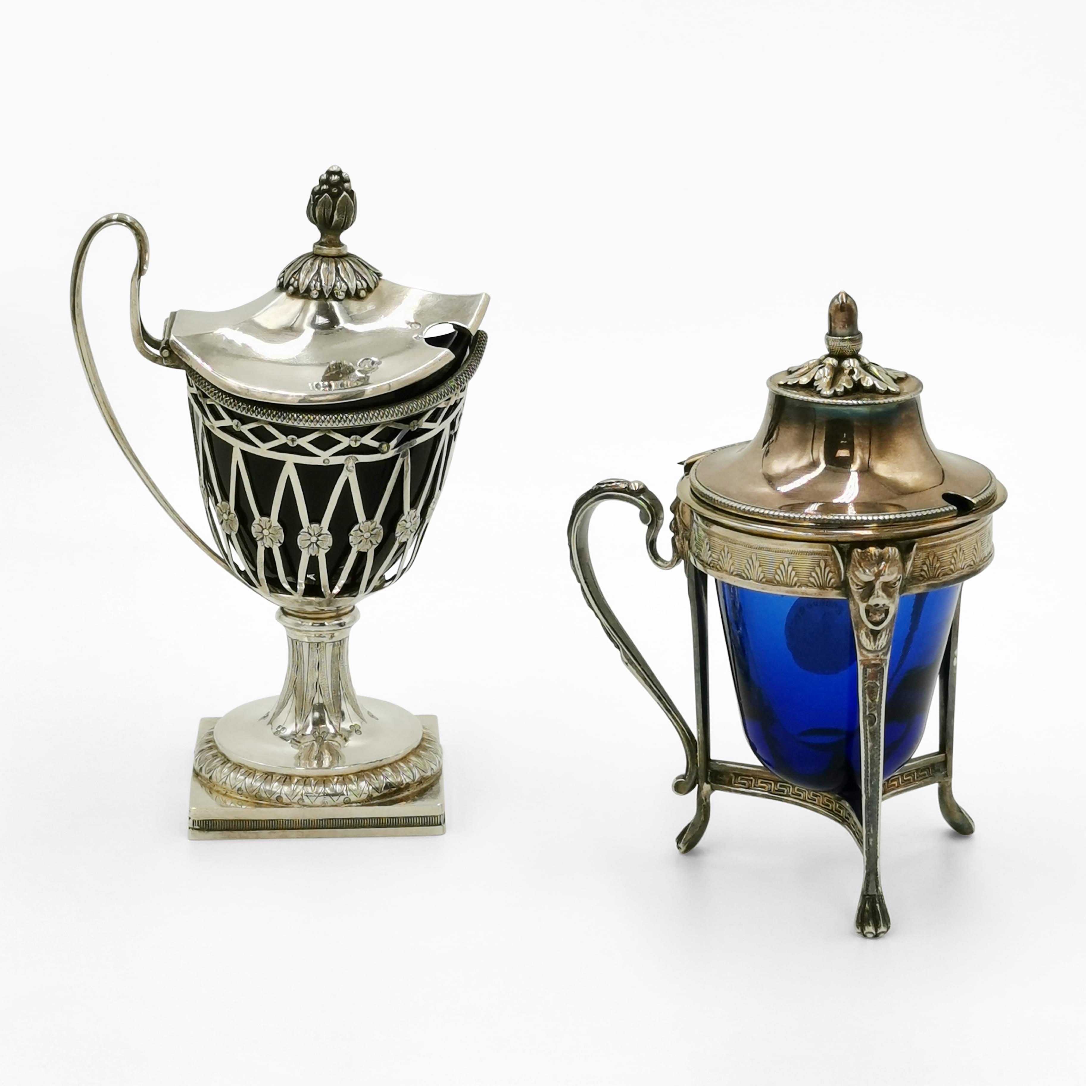 4175. Deux moutardiers d'époque Empire à décor de satyres et ajouré de losanges
