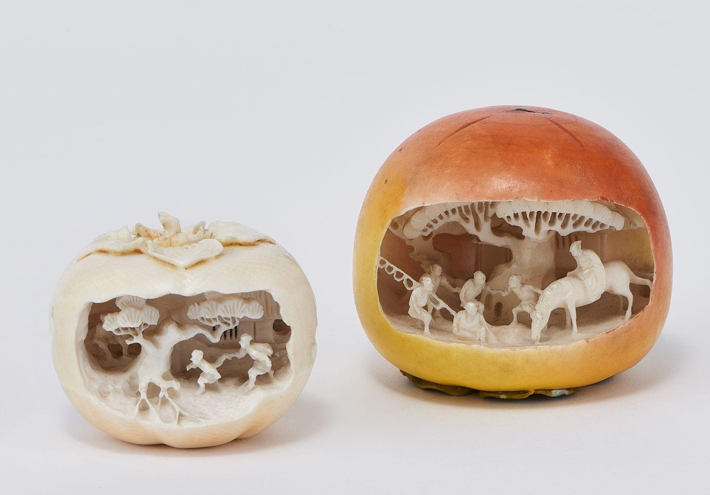 431. Deux okimonos en forme de fruits, Japon, début XXe s