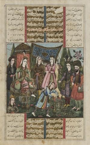902. Deux pages de livre illustrées de miniatures, Iran, époque Qajar (1786-1925)