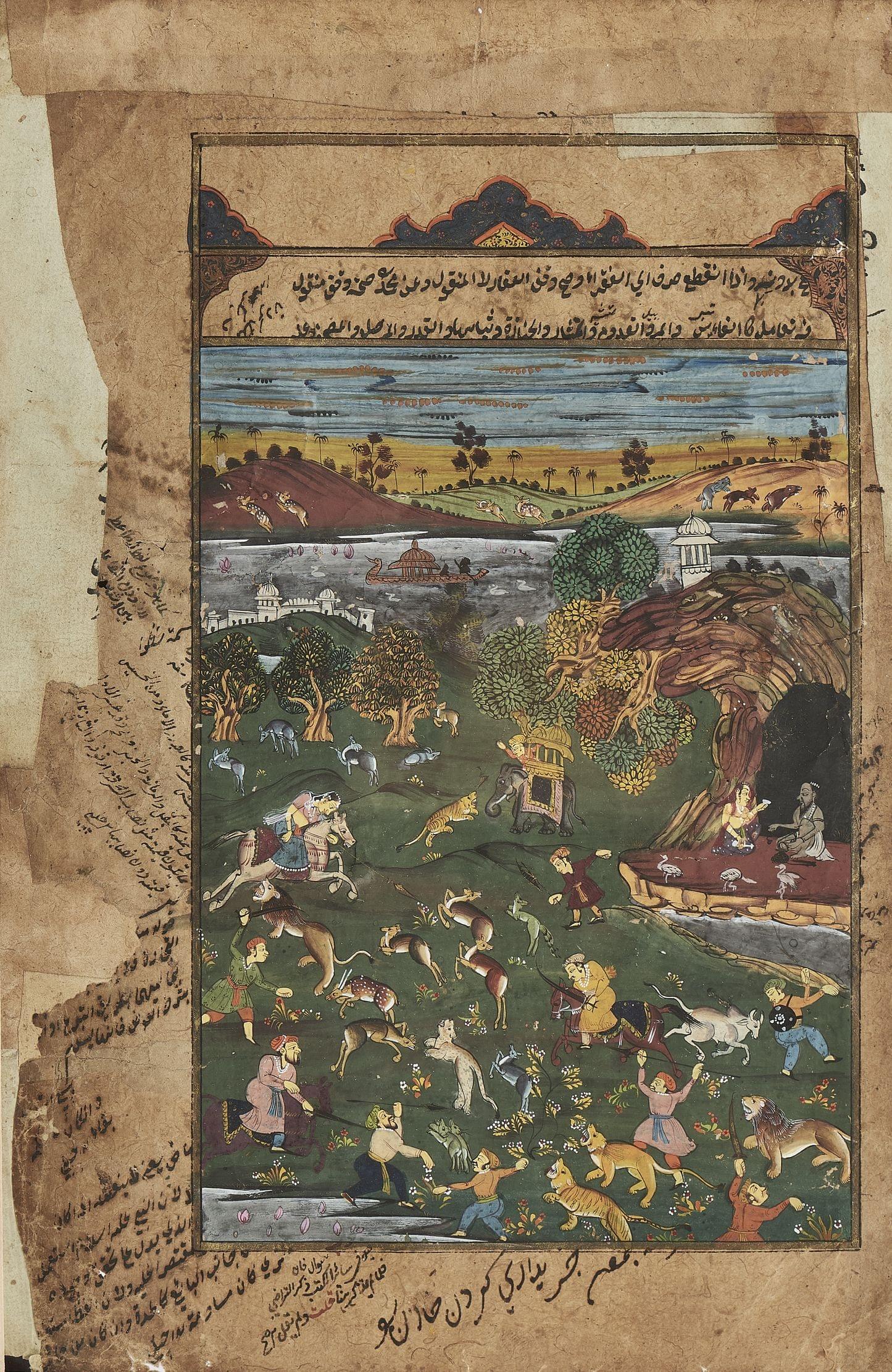 3711. Deux pages de livre ornées de miniature, Inde XXe s