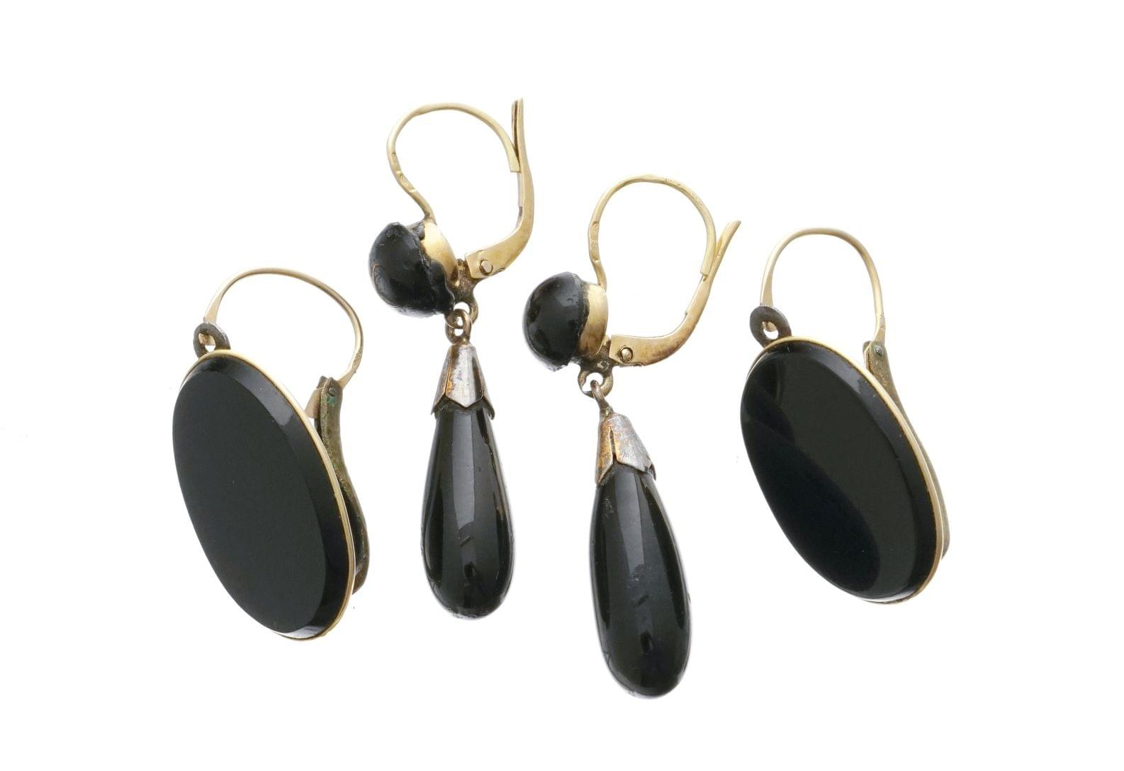 3112. Deux paires de dormeuses anciennes serties d'onyx
