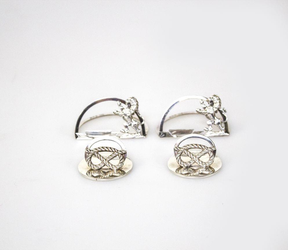 3212. Deux paires de porte-menu à motif de lion et de nœud, Londres 1899 et Birmingham 1925
