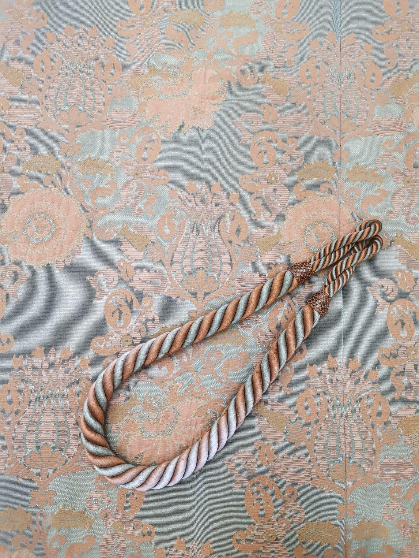 Tissu à motif floraux ocres sur fond vert, 310x90 cm