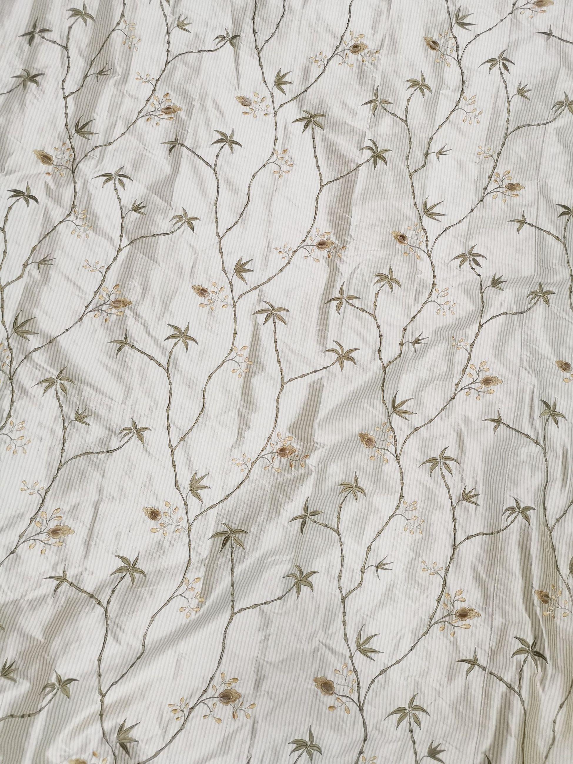 Soie à rayures à motifs brodés de rinceaux fleuris, 260x120 cm