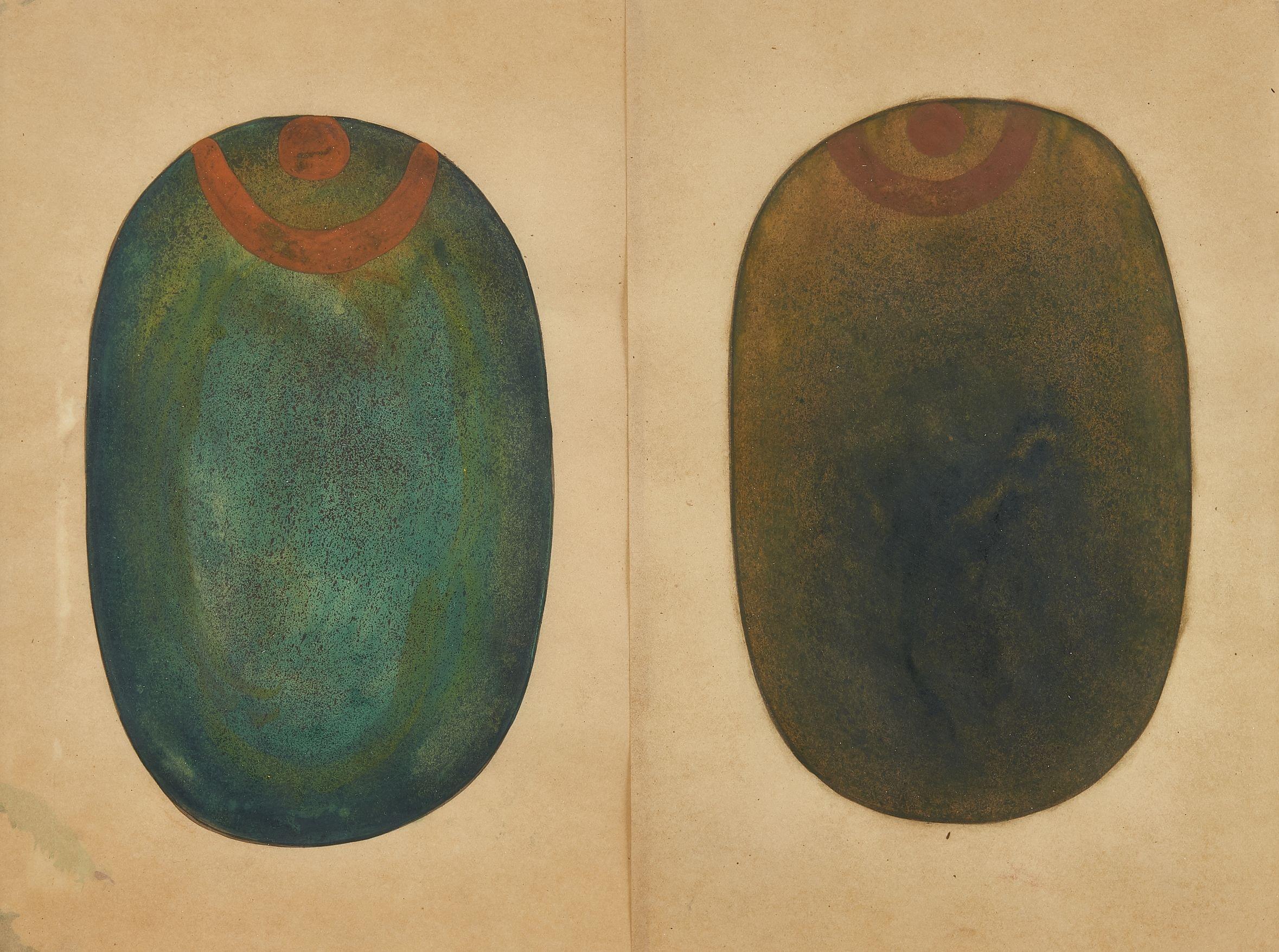 Céramique émaillée noir et vert à motif de visage, Sant-Vicens,...