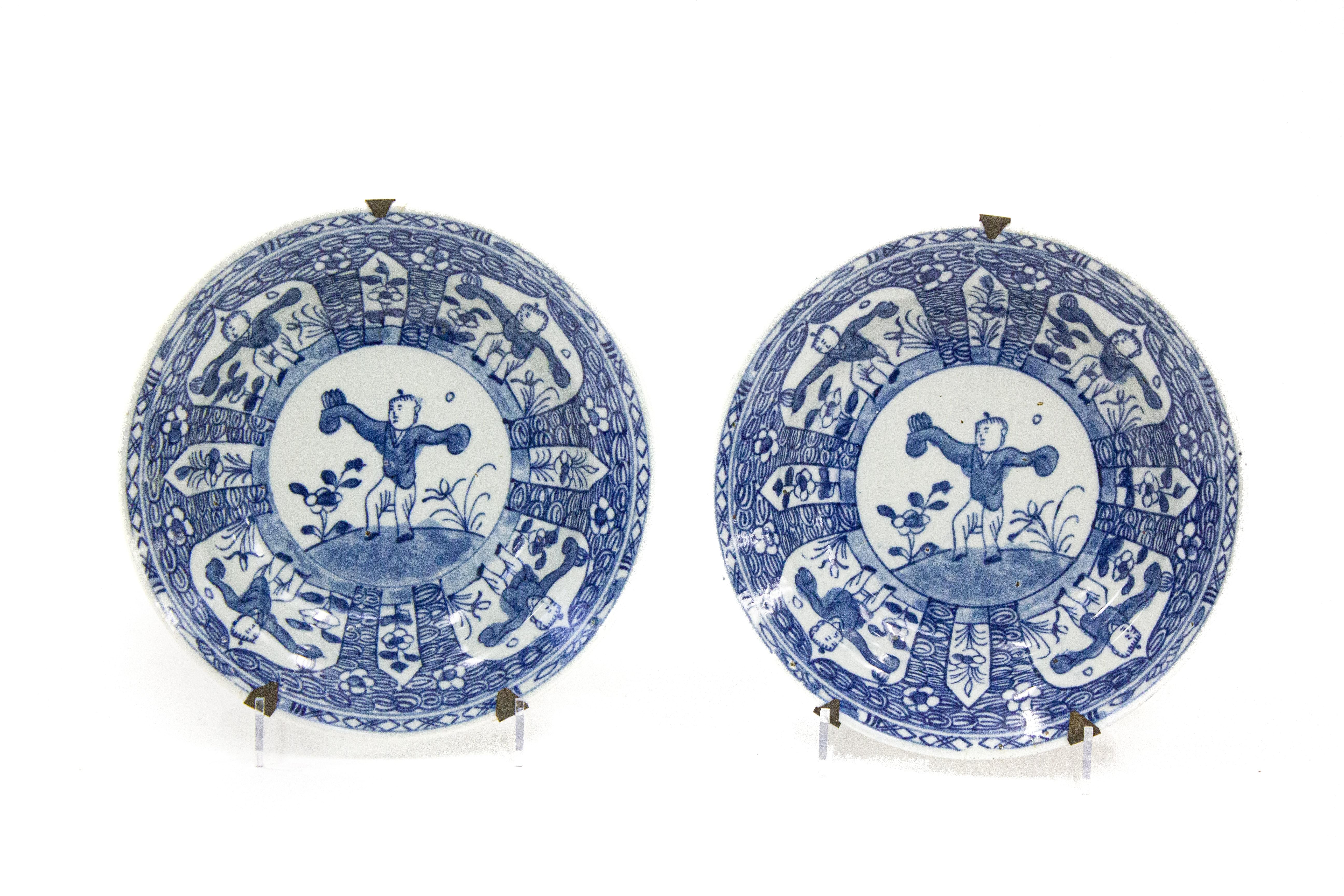 Porcelaine bleu blanc à décor de danseurs, D 16 cm