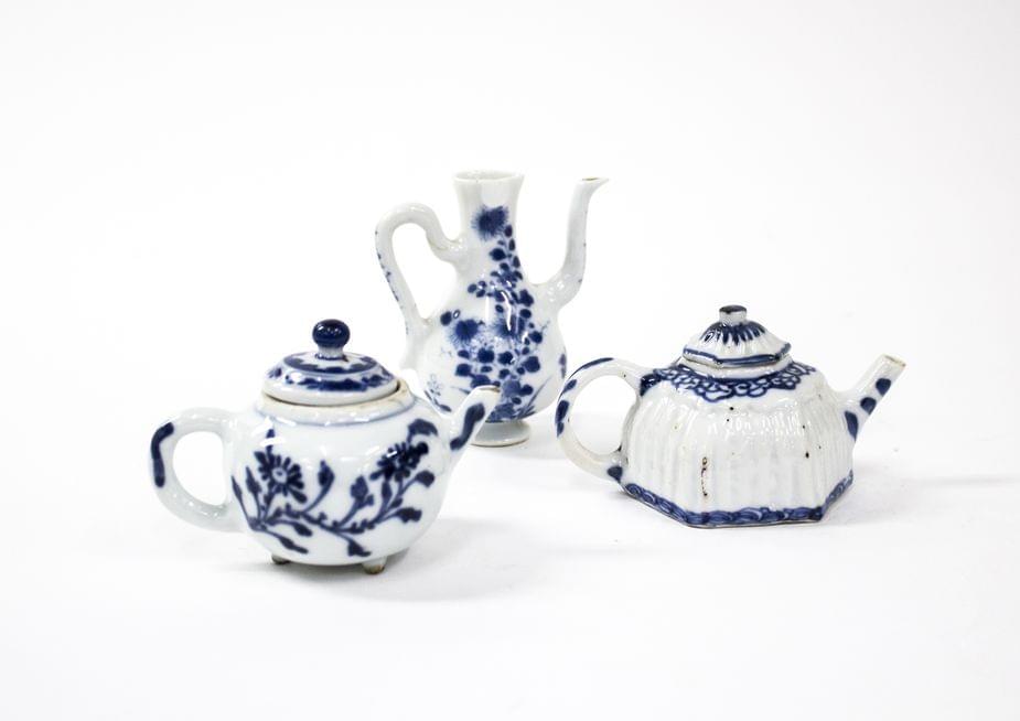 Porcelaine à décor bleu et blanc, Chine, dynastie Qing (1644-1912), H de 5 a 8 cm