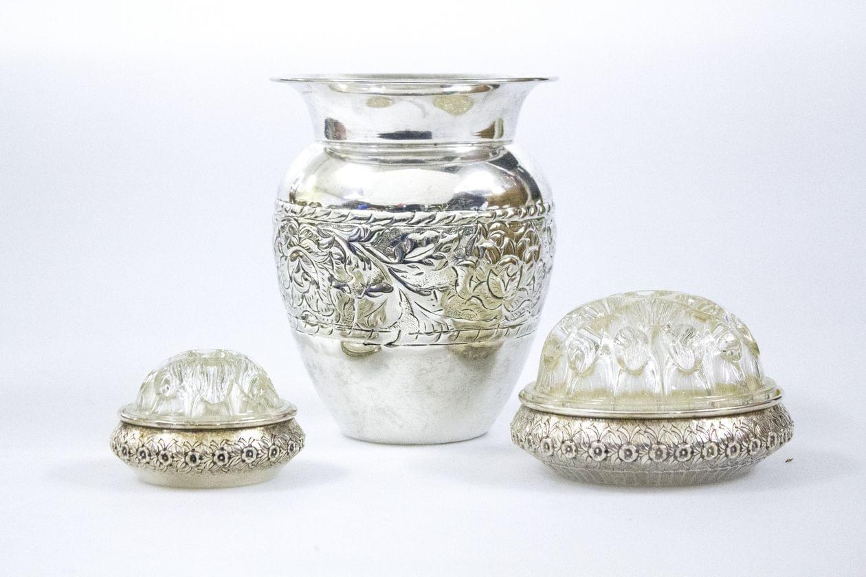 Argent 800, métal argenté et verre, H 18 cm, 230g
