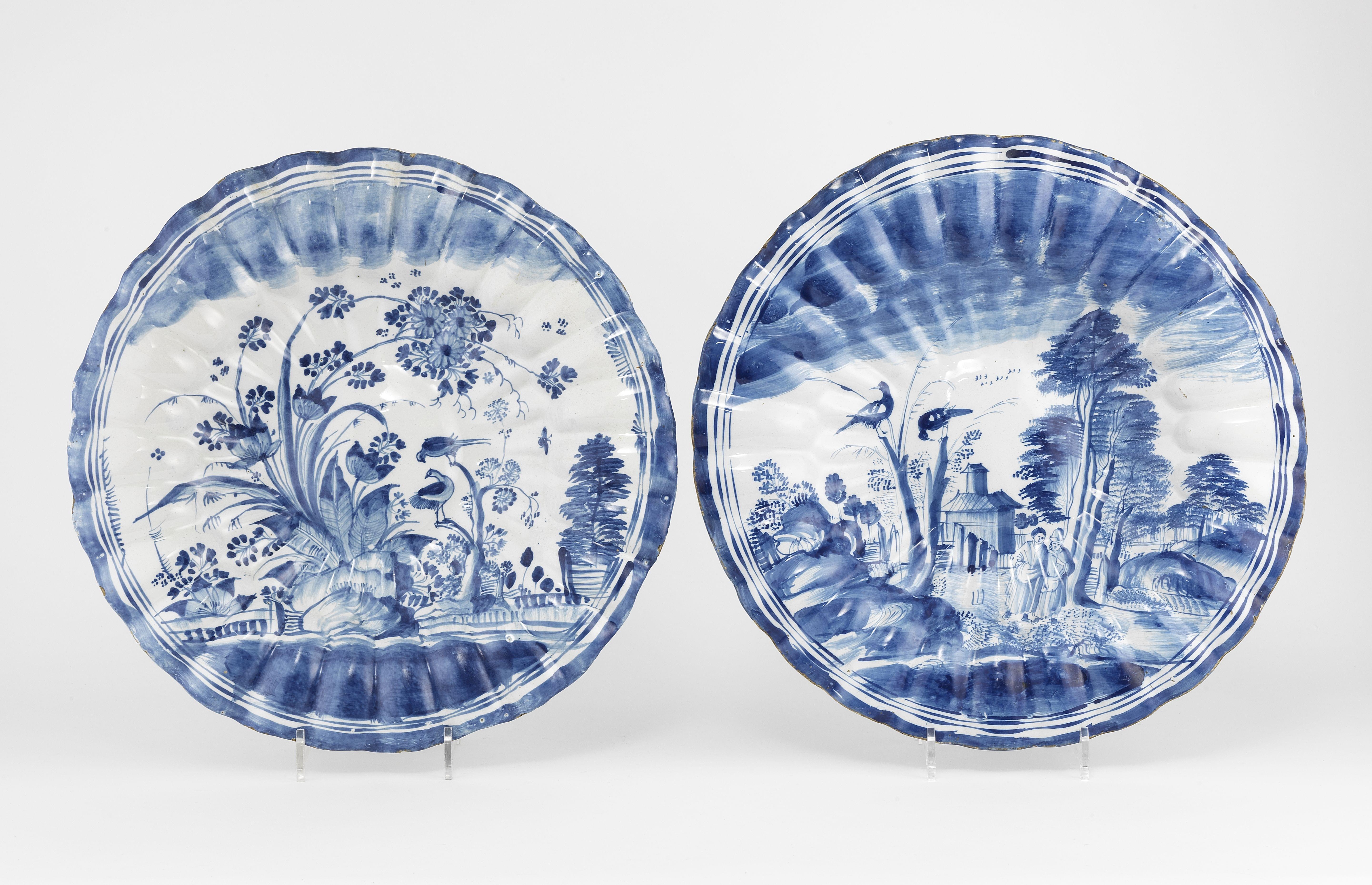 4305. Deux plats ronds à godrons, Italie, XVIIIe s