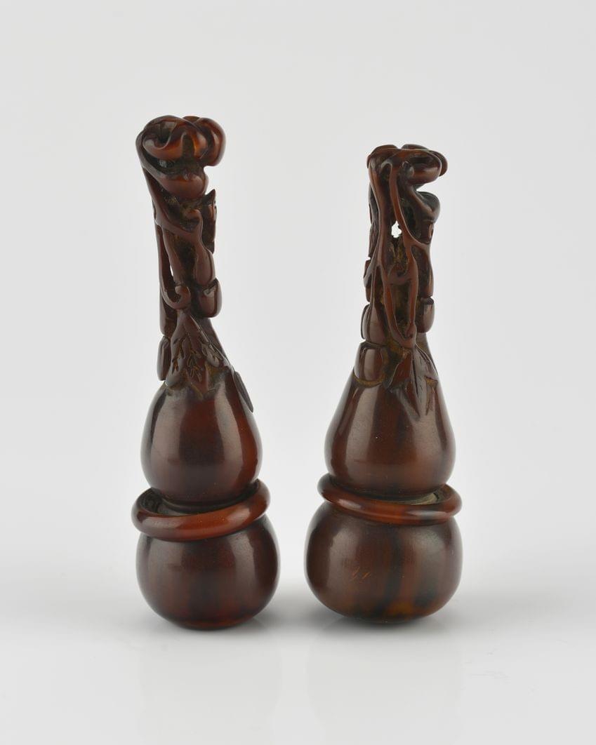 Corne, finement décorés, Chine, 7,7 et 8,8 cm