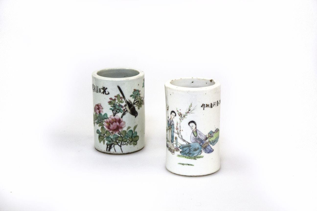 Porcelaine émaillée polychrome à décor de personnages, H 11 cm