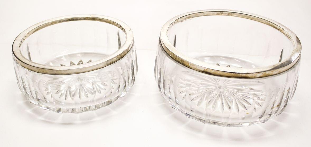 Cristal taillé cerclé d'argent 800, D 15 et 16 cm