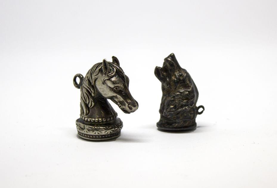 3161. Deux sceaux figurant une tête de chien et une tête de cheval
