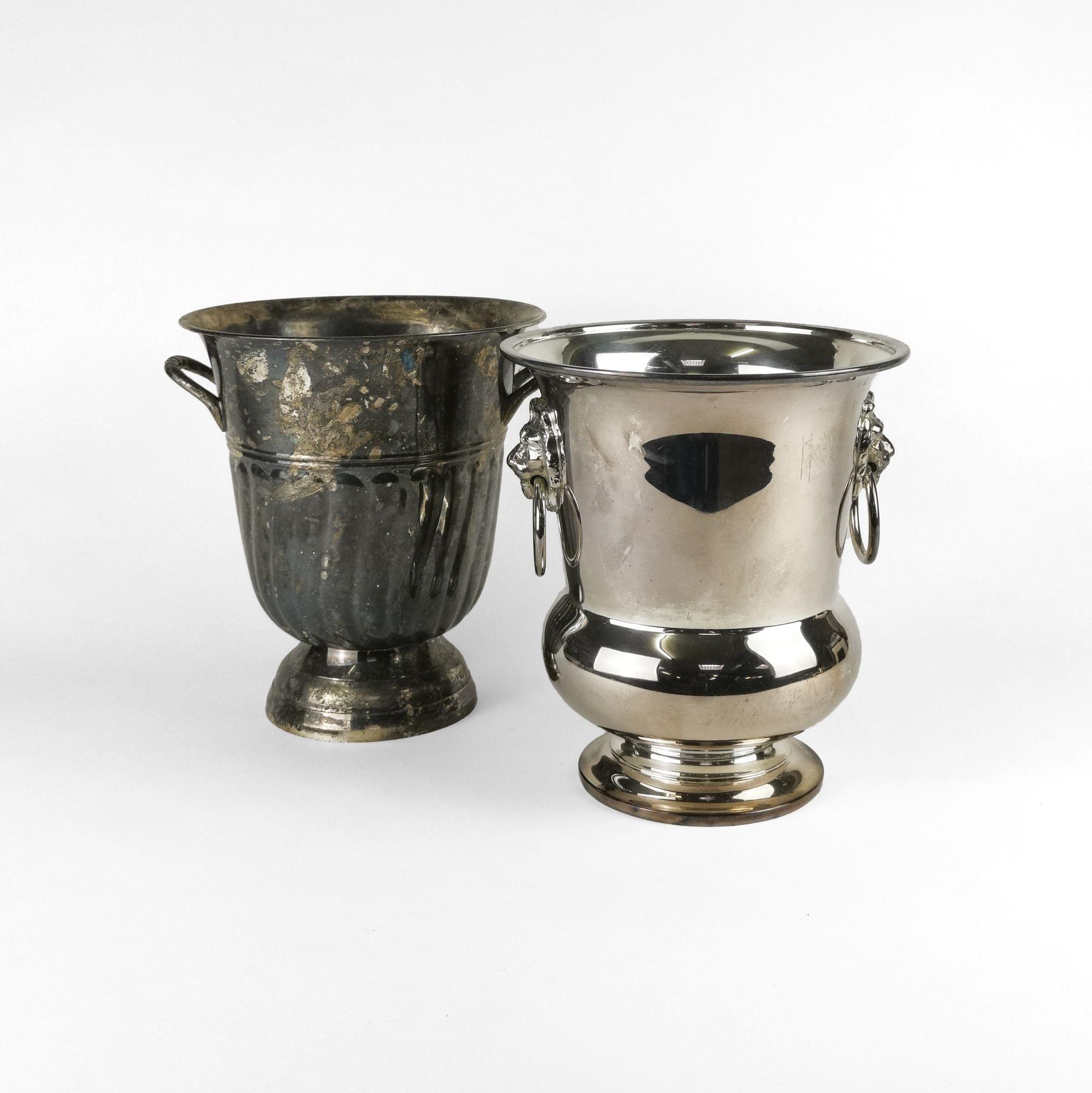 4564. Deux seaux à champagne à godrons torses et muffles de lion