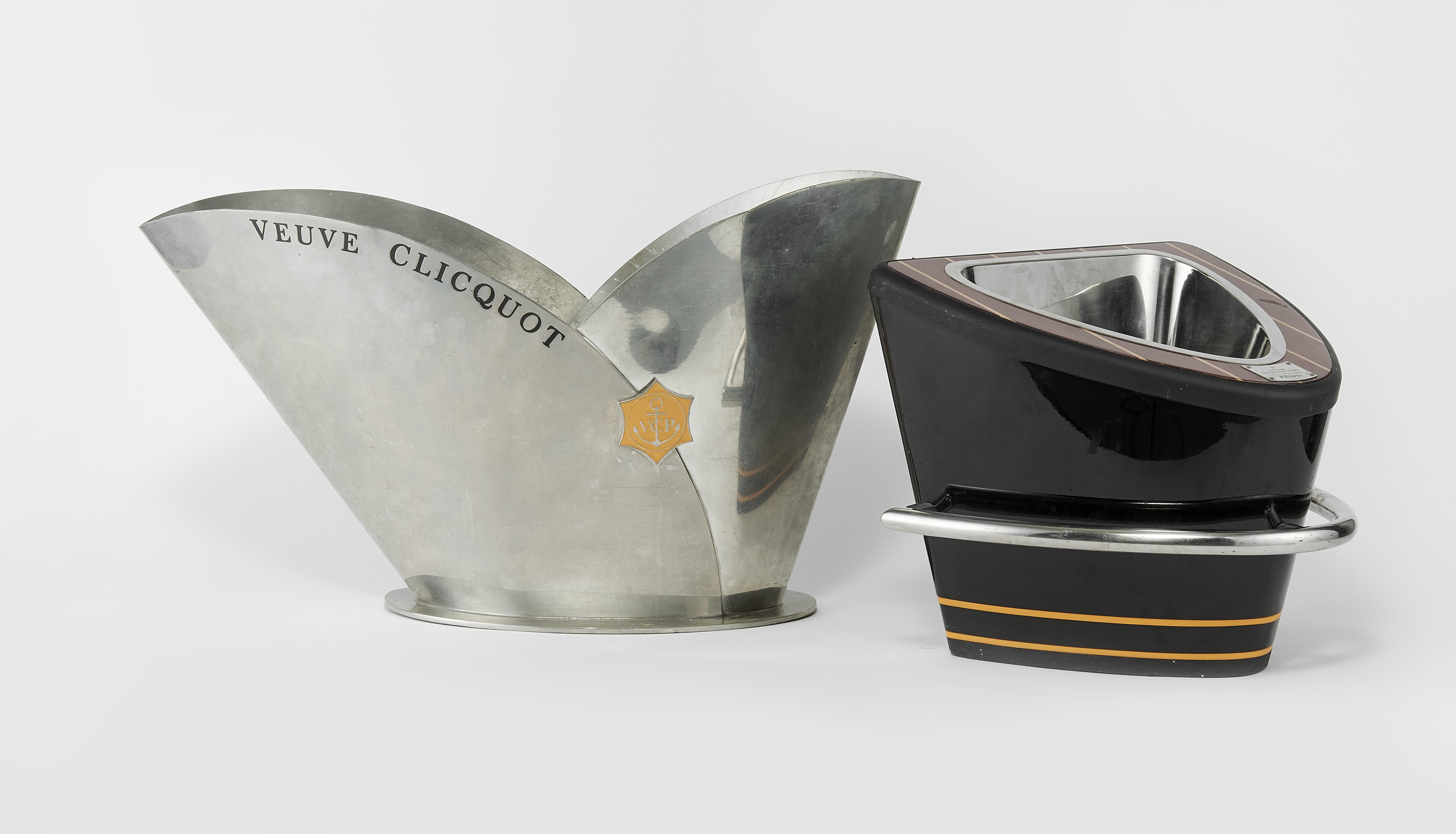 L'un en forme de proue de Riva, l'autre en métal, H 31 et 26 cm