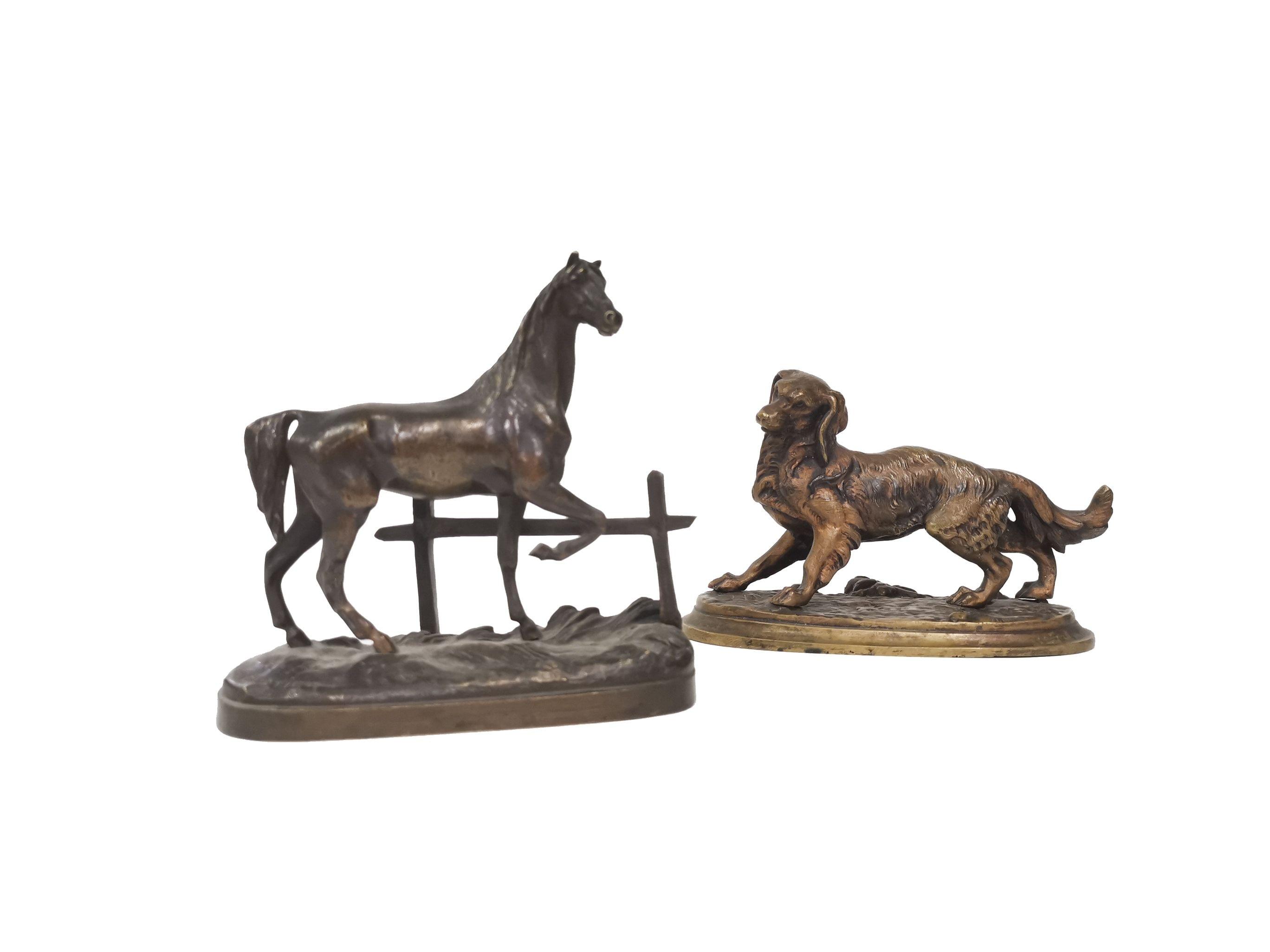 Le cheval signé Lecourtier, le chien Vidal, bronzes à patine brune, L 16 et 19 cm