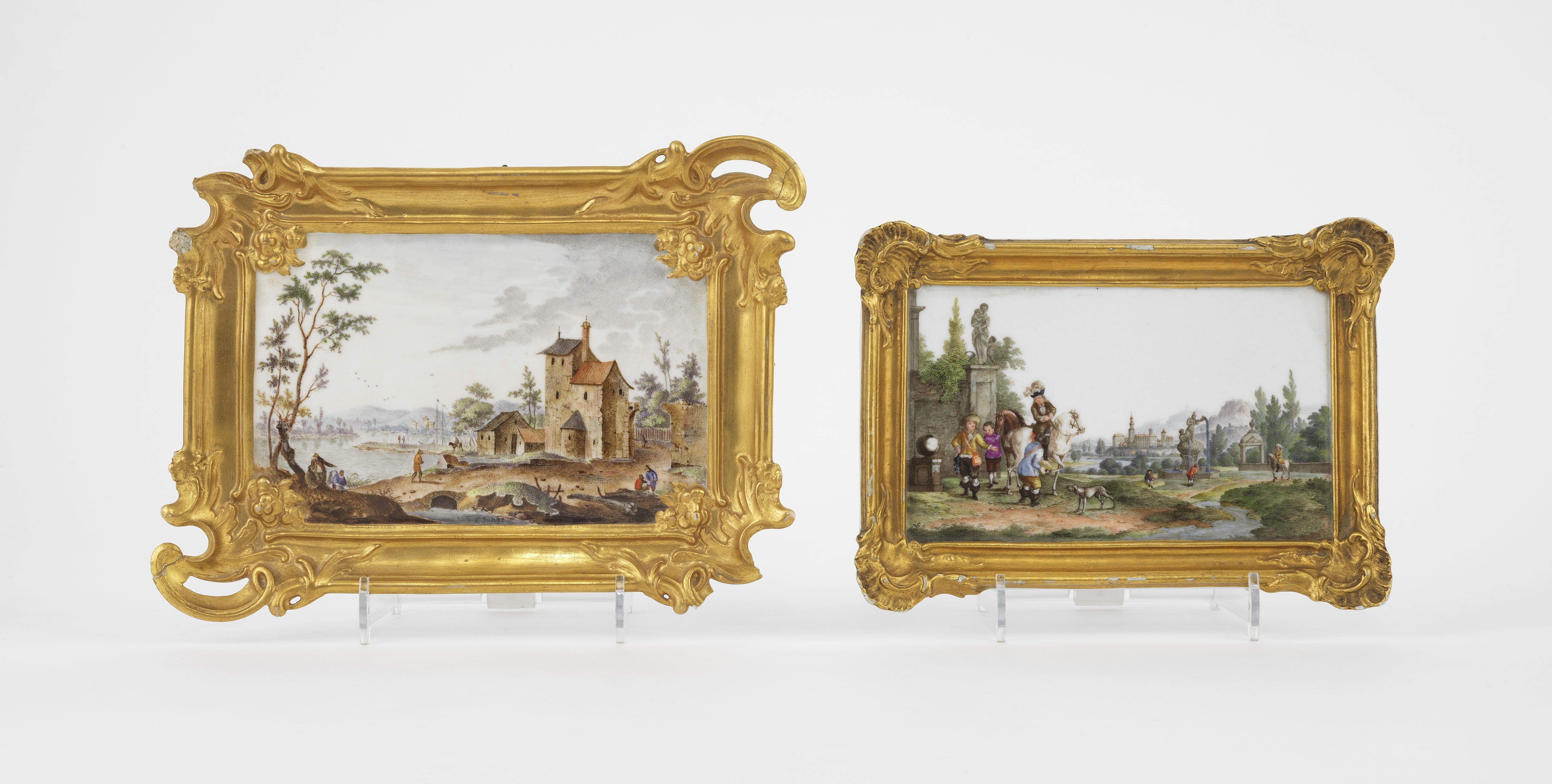 40. Suite de cinq plats à motif de musiciens, XVIIIe s