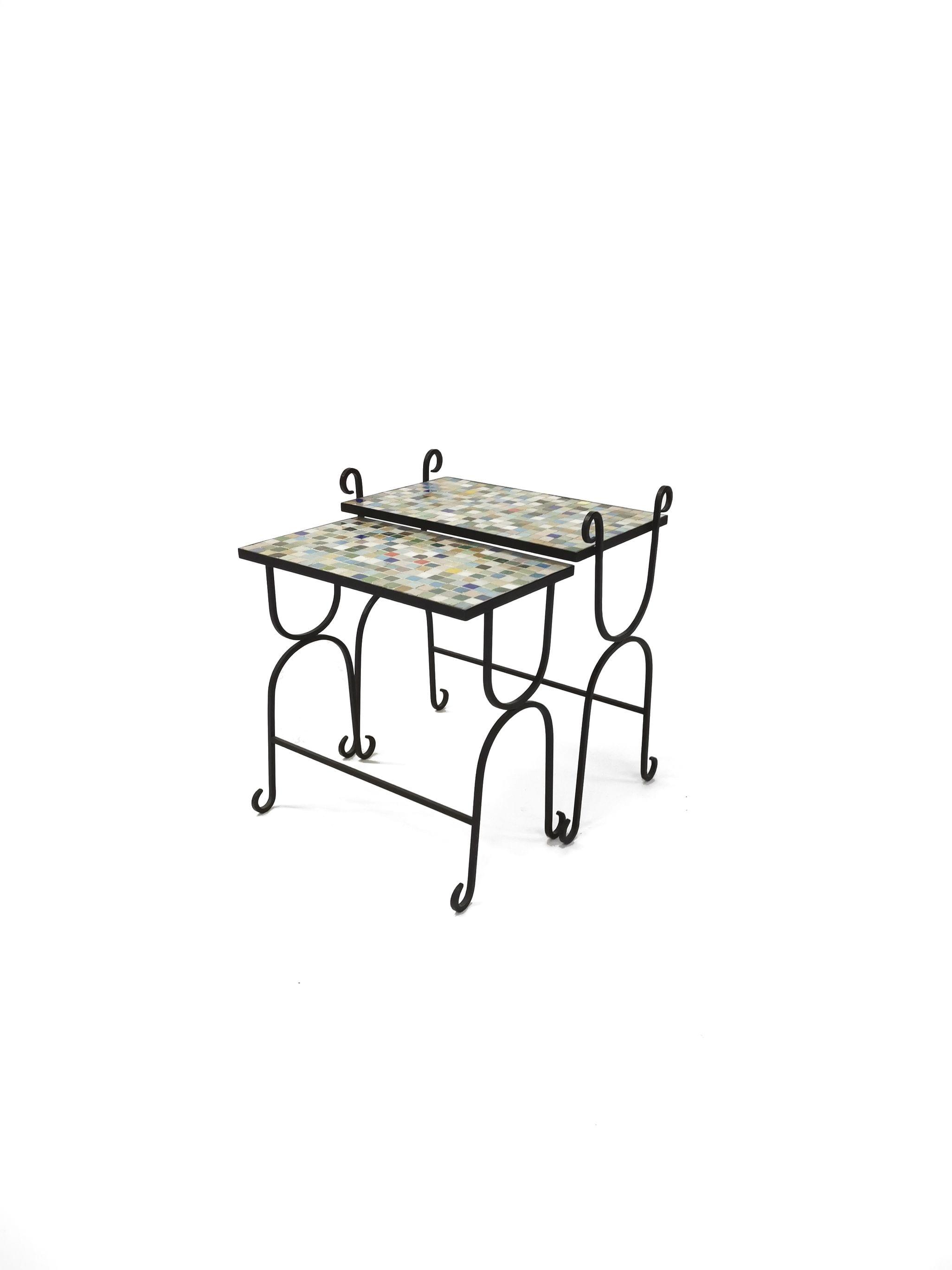 Plateau en mosaïque et métal laqué noir, 47x44x29 cm