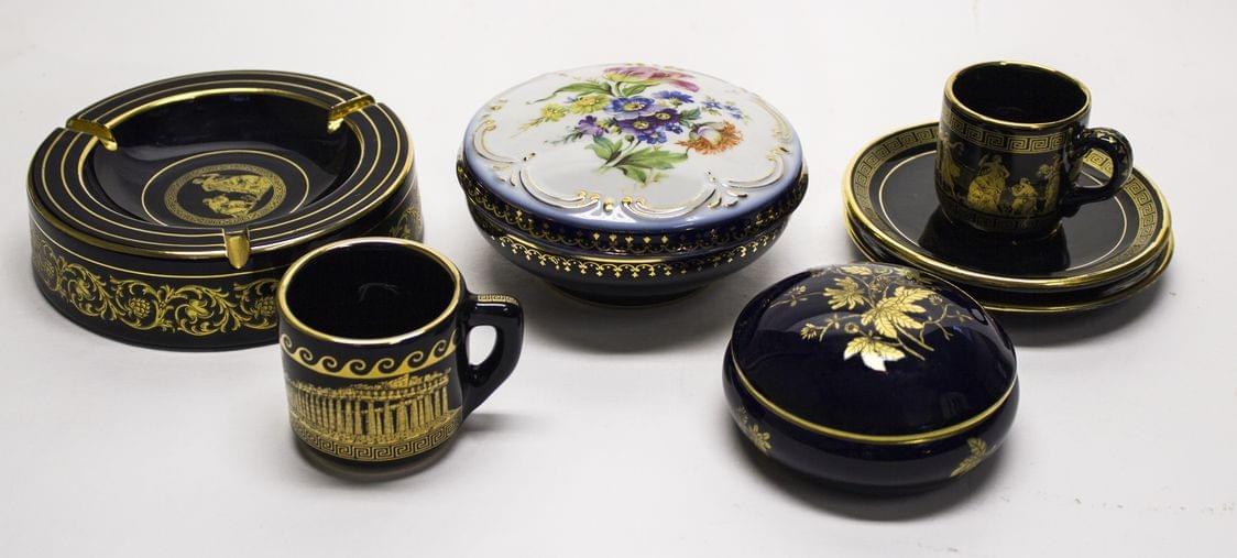 3248. Deux tasses, 2 boîtes rondes et 1 cendrier