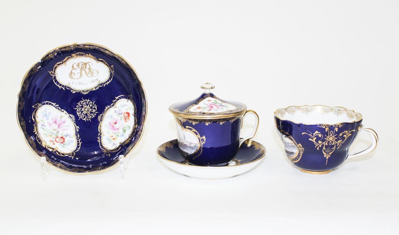 Meissen, porcelaine émaillée bleu nuit. Provenance: Château fribourgeois